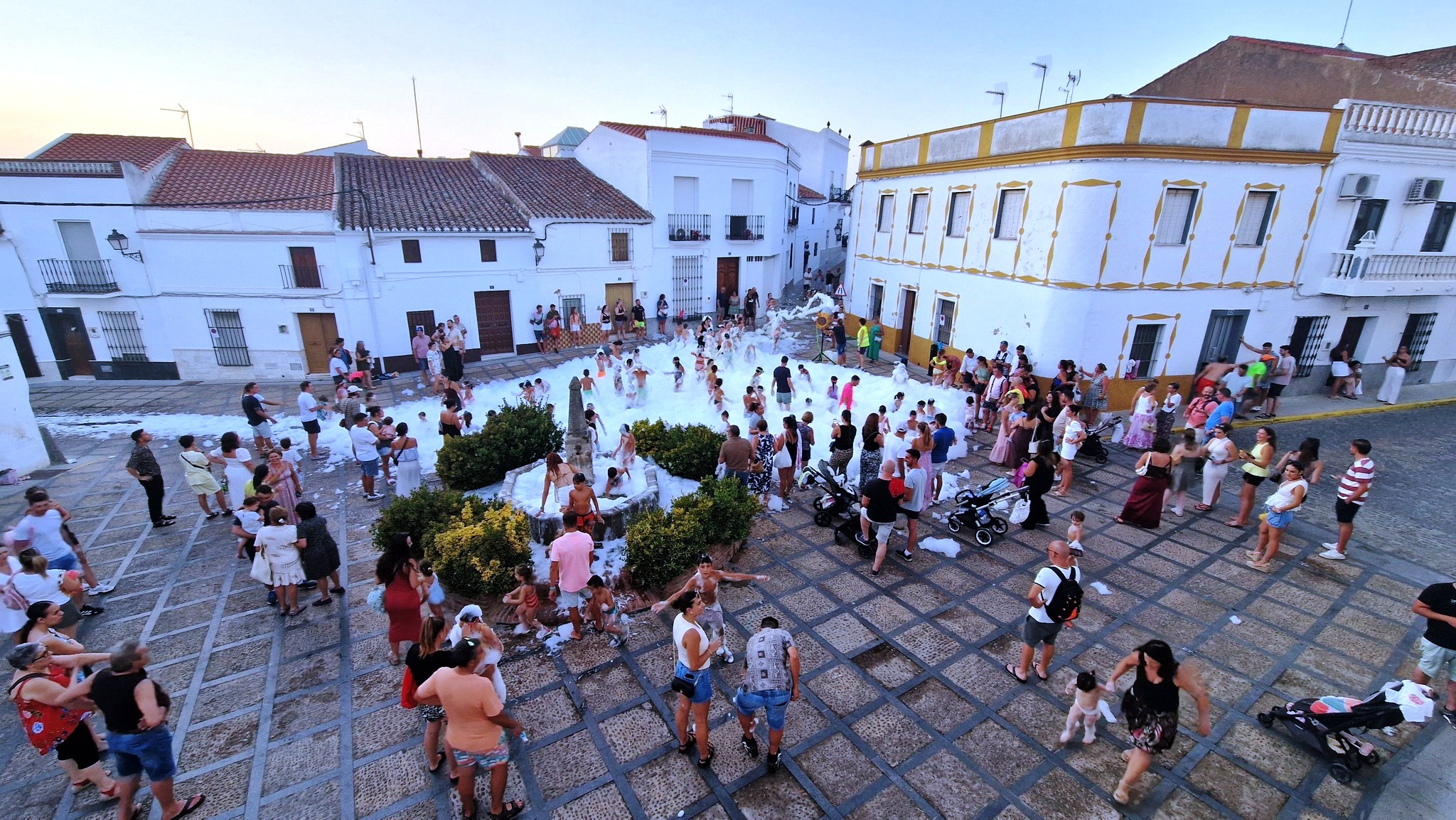 chicos y mayores en esta fiesta de la espuma organizada por la Asociación