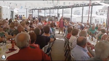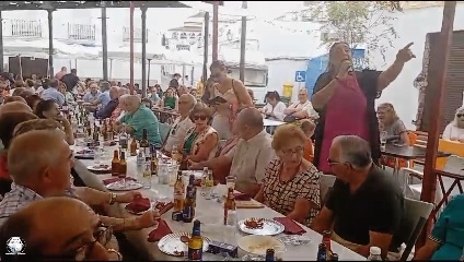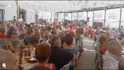 mayores con una comida para celebrar la fista mayor,