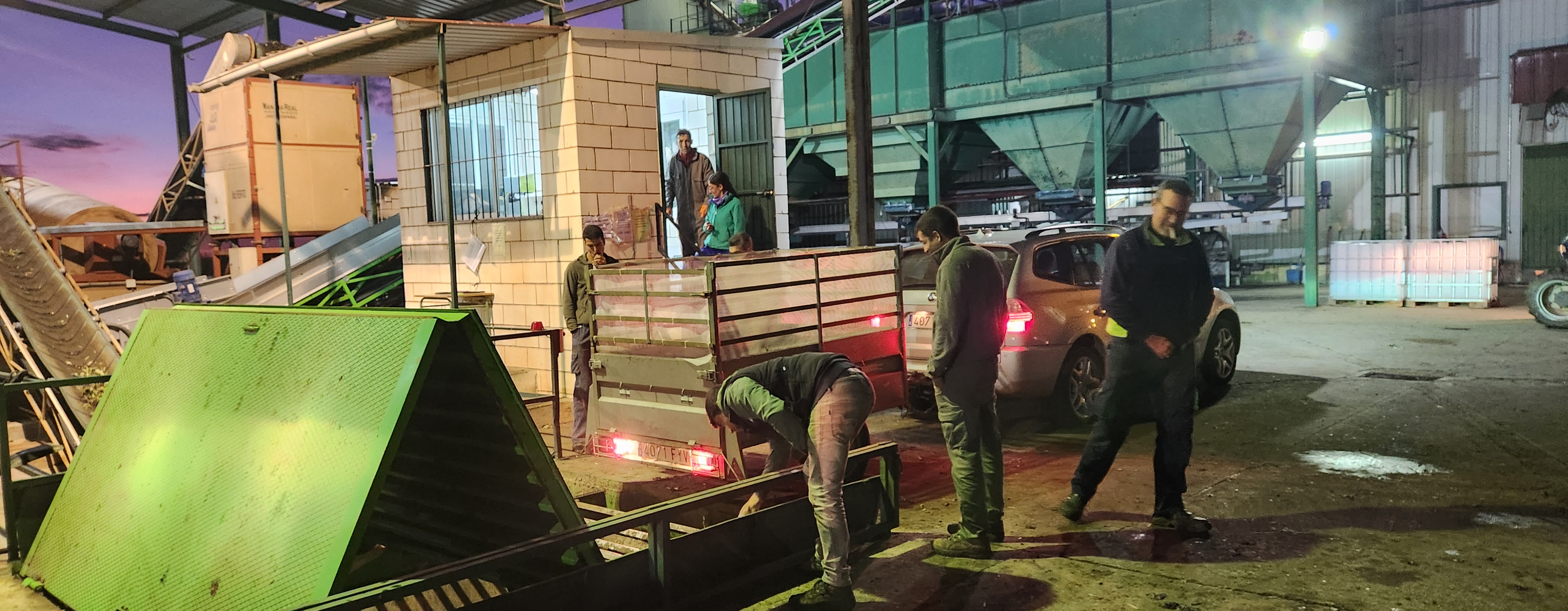 Cintas trasportadoras de la aceituna hasta el depósito de pesaje.