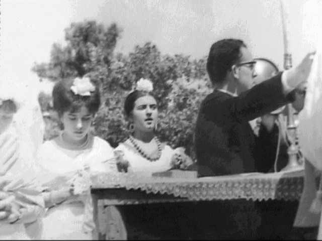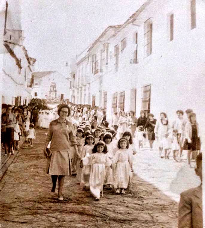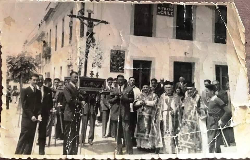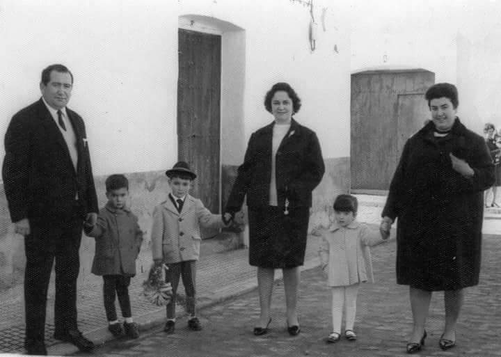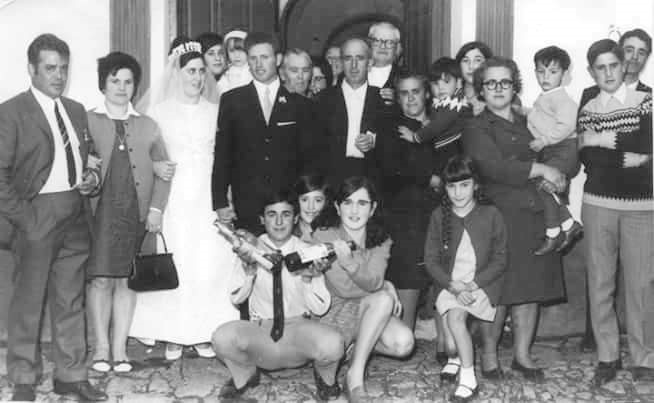 Foto en la puerta de la Iglesia de finales de los 50