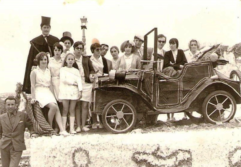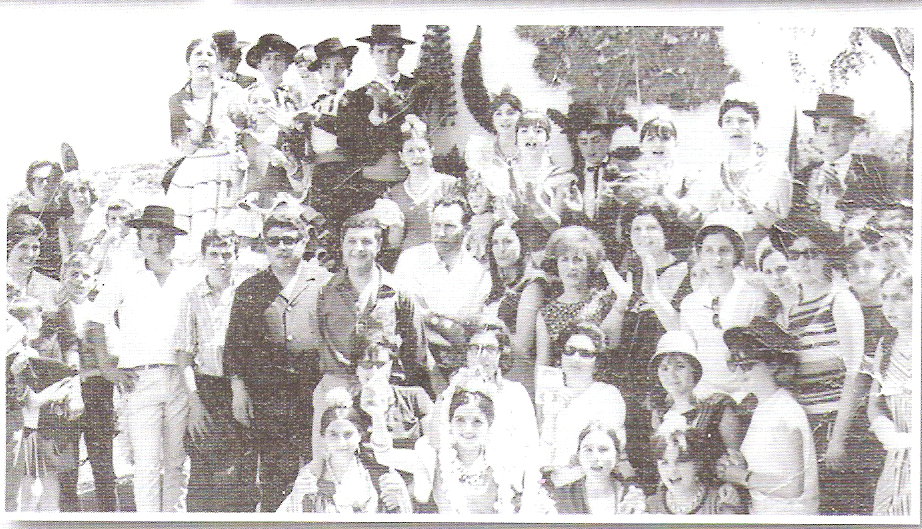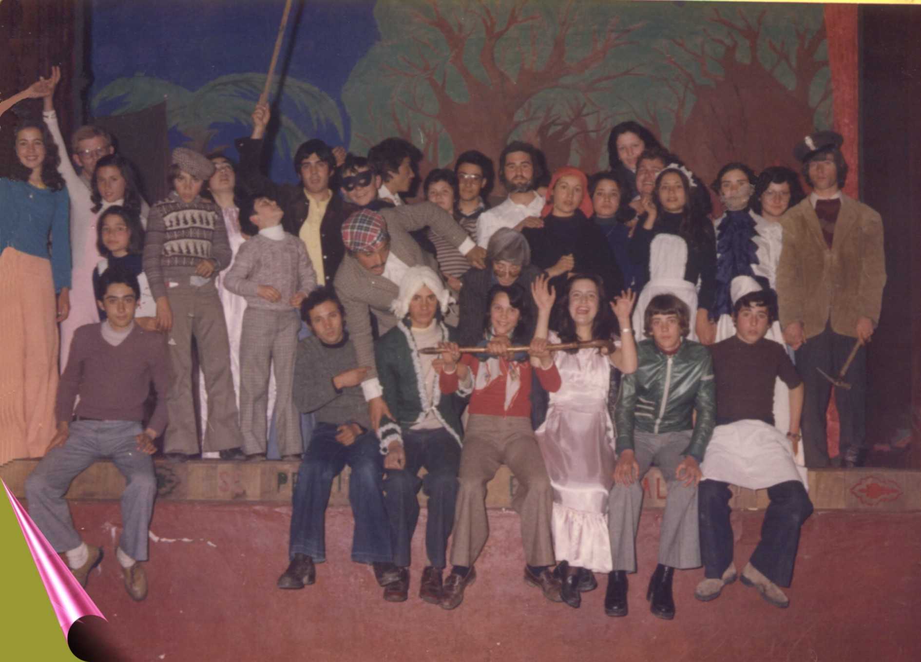 Esta foto que aparece más abajo nos recuerda el final exitoso de la representación teatral y otras actuaciones llevada a cabo por chicos y mayores en el año 1975 en el cine de invierno.