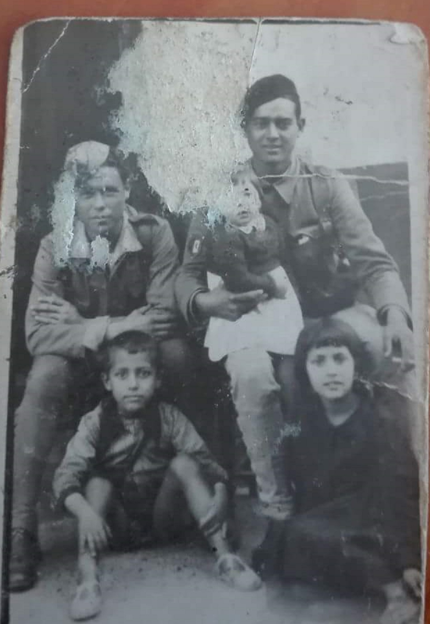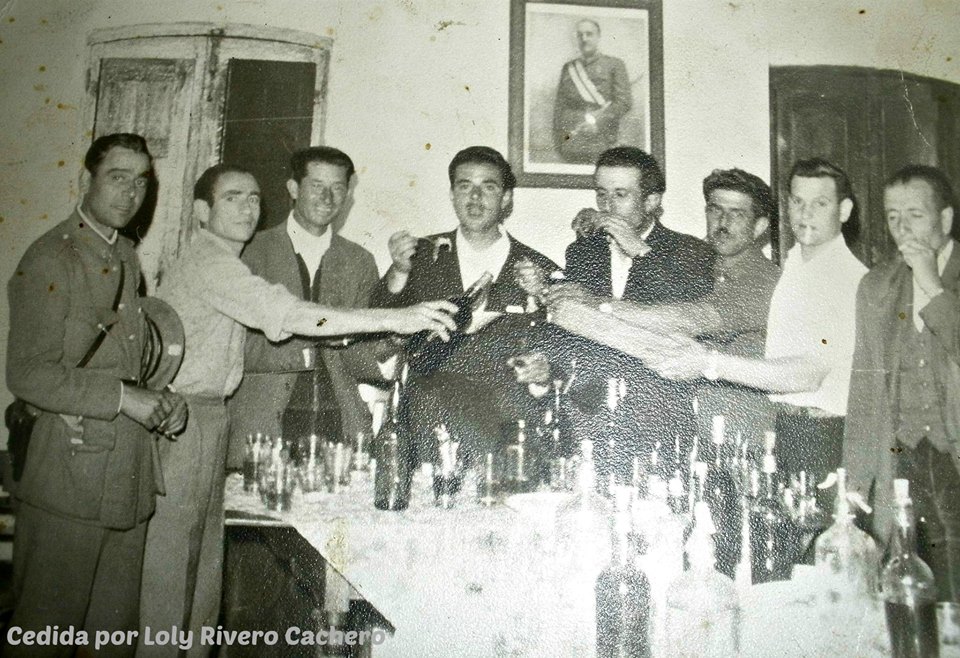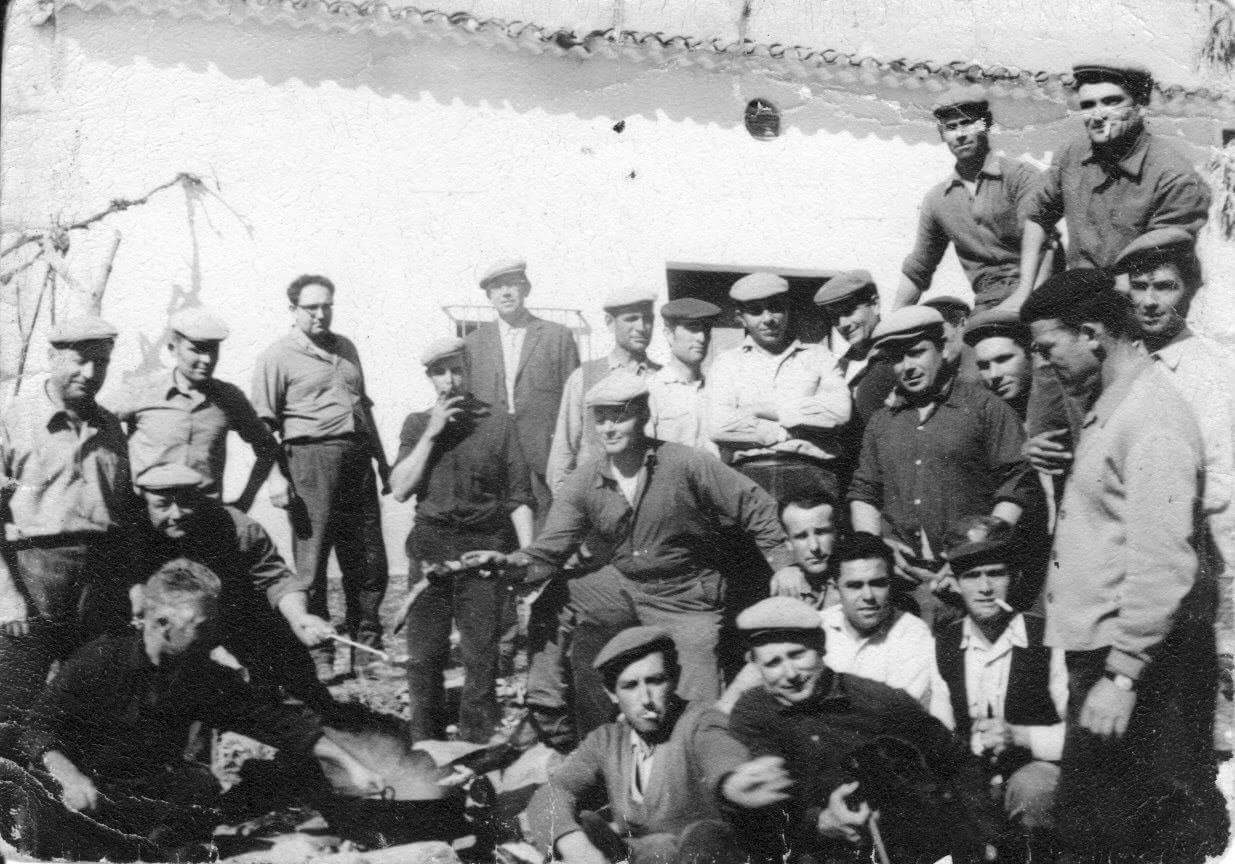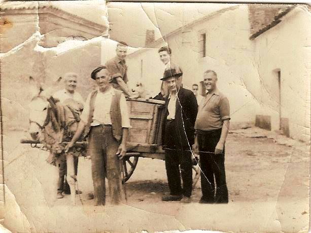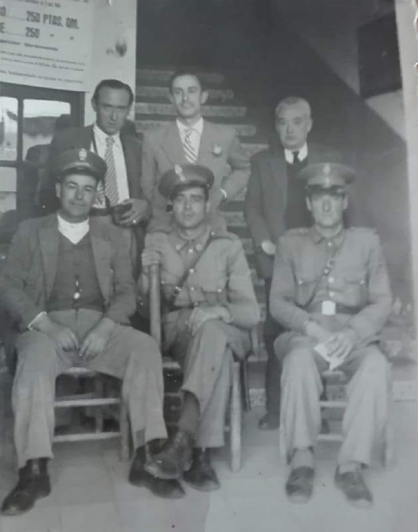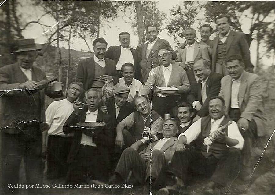 AGACHADOS (izda a dcha): Macario, Noño el municipal, Juan Guijo, Luis Fdez, Un maestro, Patrón.