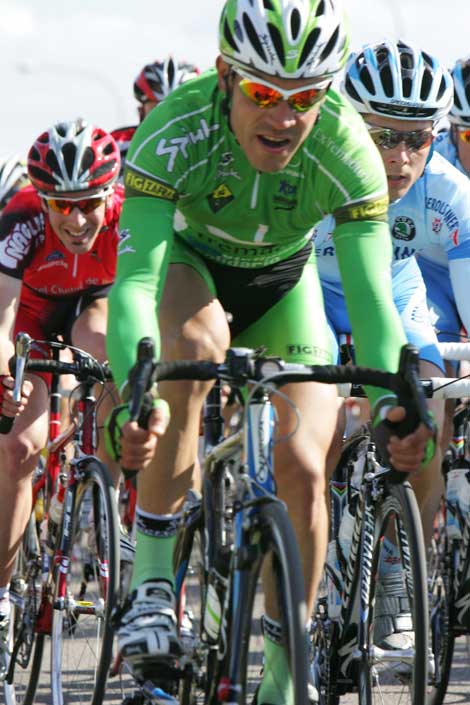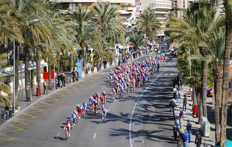 Aquí le tenemos en el pelotón de la carrera Chalenguer 2008, en el paseo marítimo de la Palma (Vuelta ciclista a Mallorca).