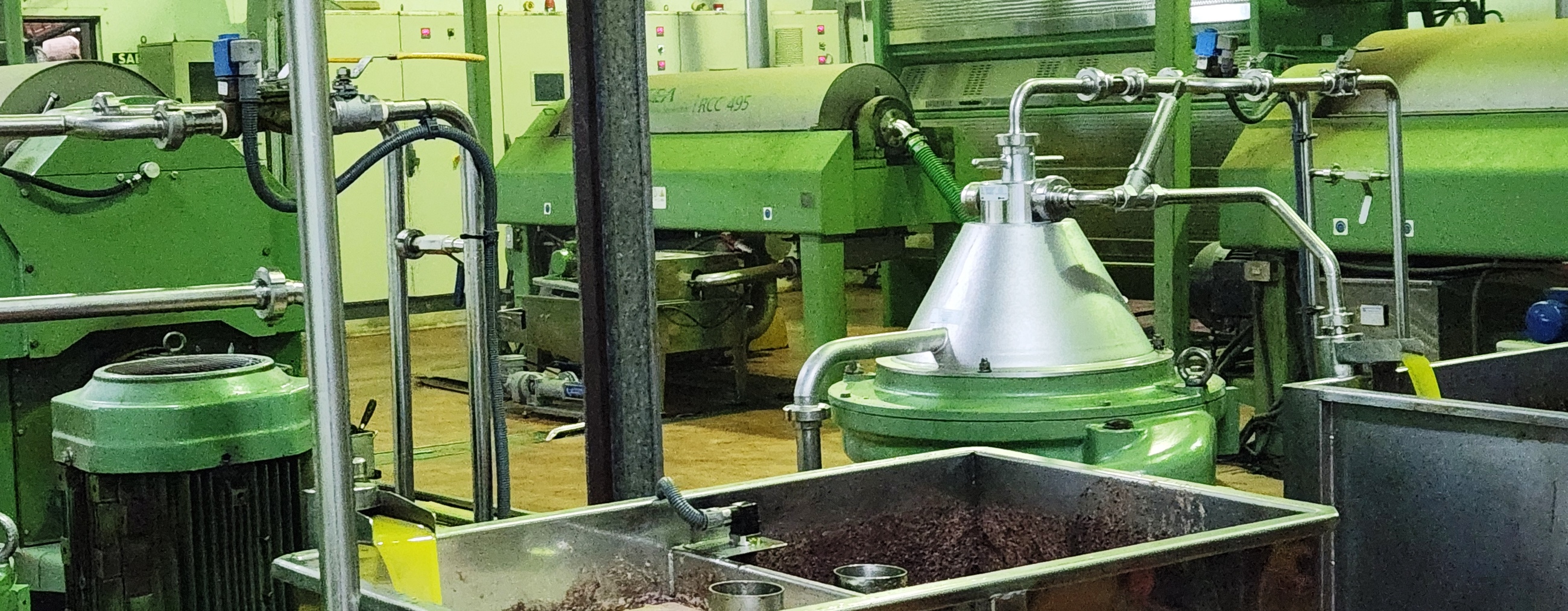 Maquinarias de interior que bate, separa, centrifuga y limpia la aceituna triturada procedente del molino.