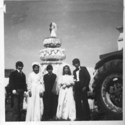 Foto en la puerta de la Iglesia de finales de los 50